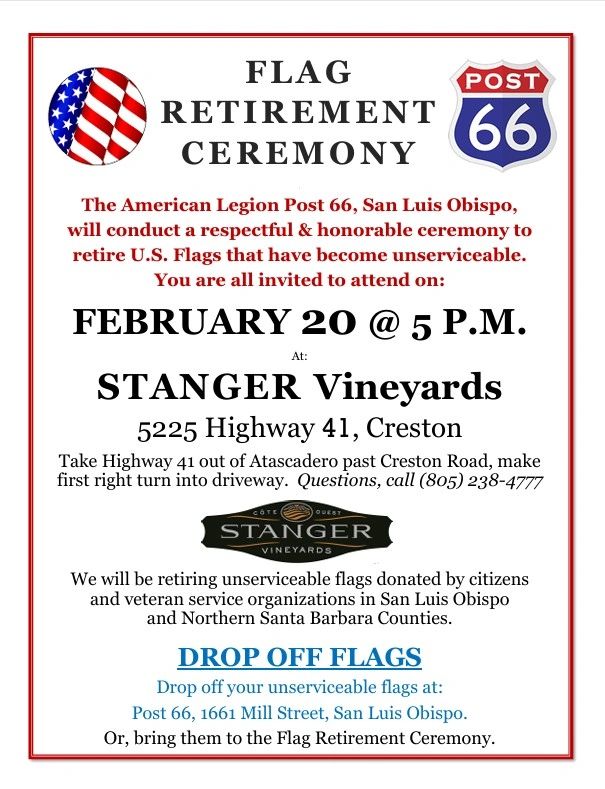 Unserviceable flags may also be dropped off at the Paso Robles Veterans Hall at 240 Scott Street before February 20.